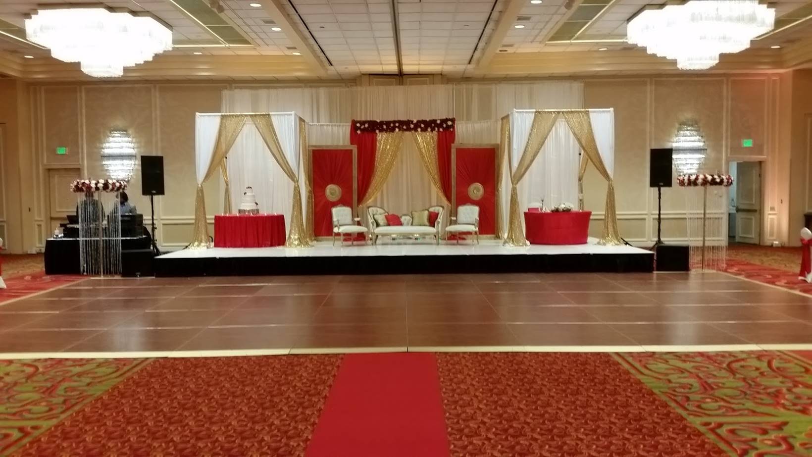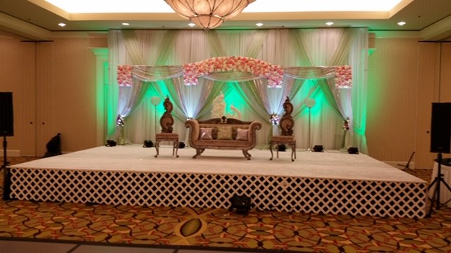 Here are some unique wedding and reception décor we have done around DFW area, take a look at some idea for Wedding stages, head tables, dance floors, center pieces, and lighting. Give us a call and we will be happy to share more ideas.